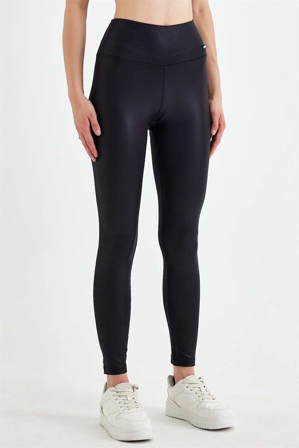 Kadın Metalik Parlak Spor Tayt – Yüksek bel, esnek ve nefes alabilir kumaşıyla hem spor hem günlük kombinlerde şık ve rahat kullanım sunar.